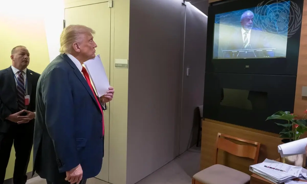 A Organização das Nações Unidas divulgou na terça-feira (23) uma foto em que o presidente dos Estados Unidos, Donald Trump, aparece acompanhando atentamente o discurso do presidente Luiz Inácio Lula da Silva na abertura da 80ª Assembleia Geral, em Nova York. O registro ganhou destaque porque, minutos depois, Trump mencionou diretamente o petista em sua fala, revelando um encontro rápido nos bastidores e afirmando que pretende se reunir com ele na próxima semana.