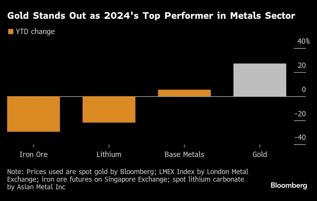 Ouro se destaca como o melhor desempenho em 2024 no setor de metais